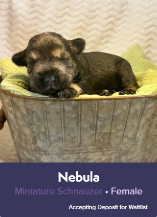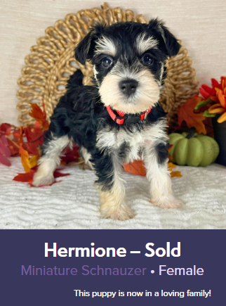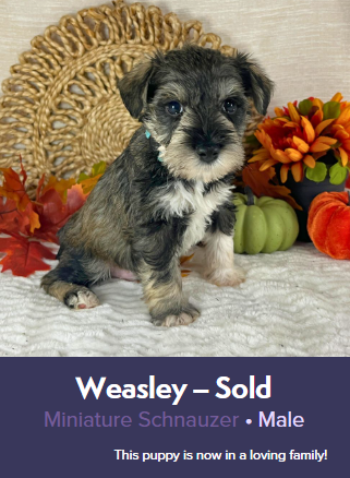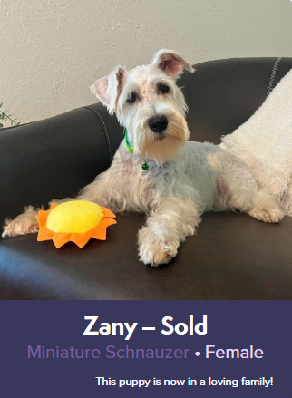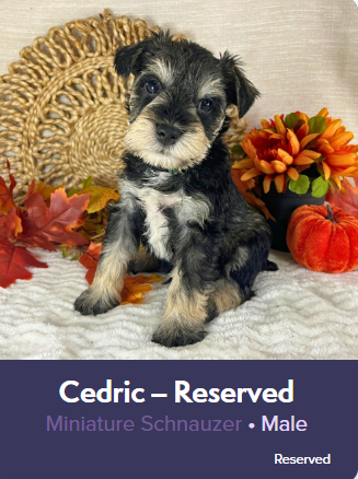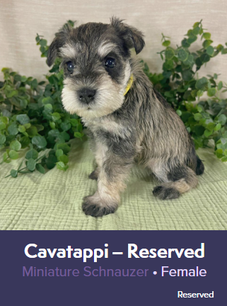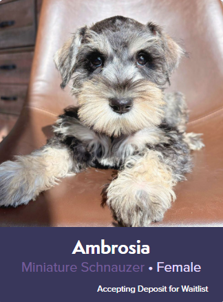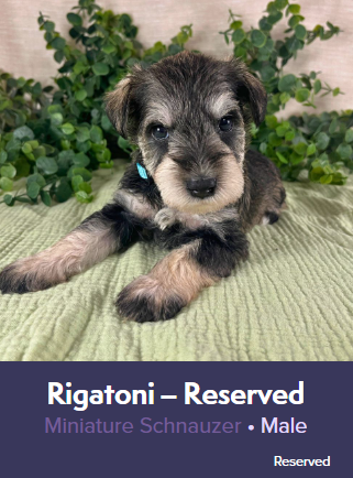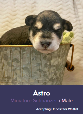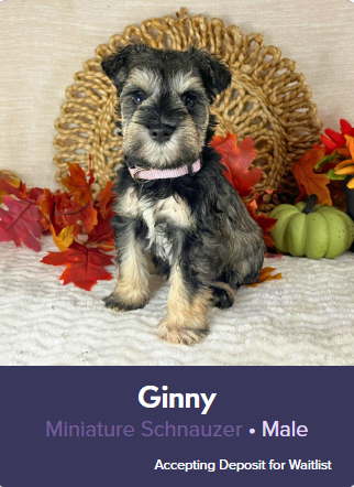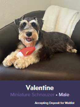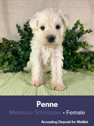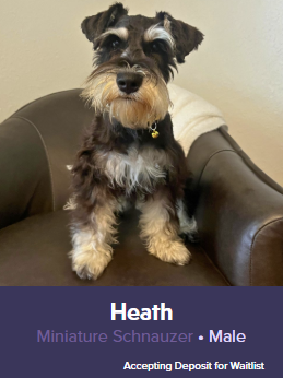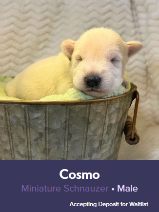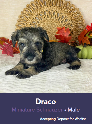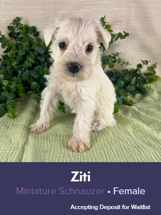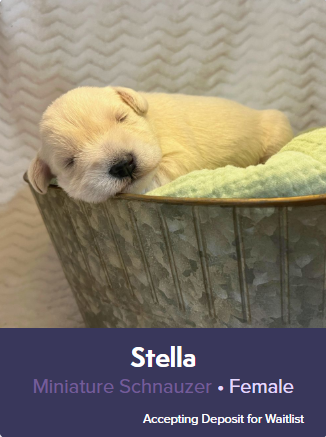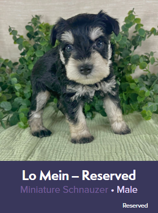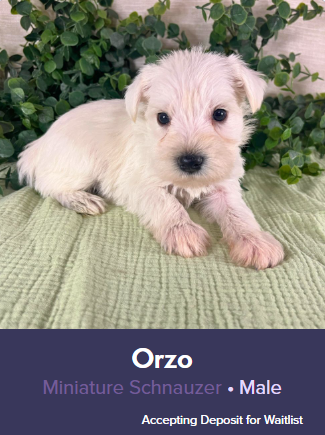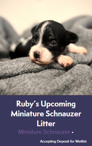 Miniature Schnauzers are a small friendly breed with an average height of 12 – 14″. This loyal breed makes a very good family dog and they are also child friendly. Miniature Schnauzers are affectionate, loving and playful – making them great companions! The coat color of a Miniature Schnauzer is typically solid black or salt and pepper and they are a low shedding breed with distinctive bushy beard and eyebrows. To learn more about Miniature Schnauzers, CLICK HERE.