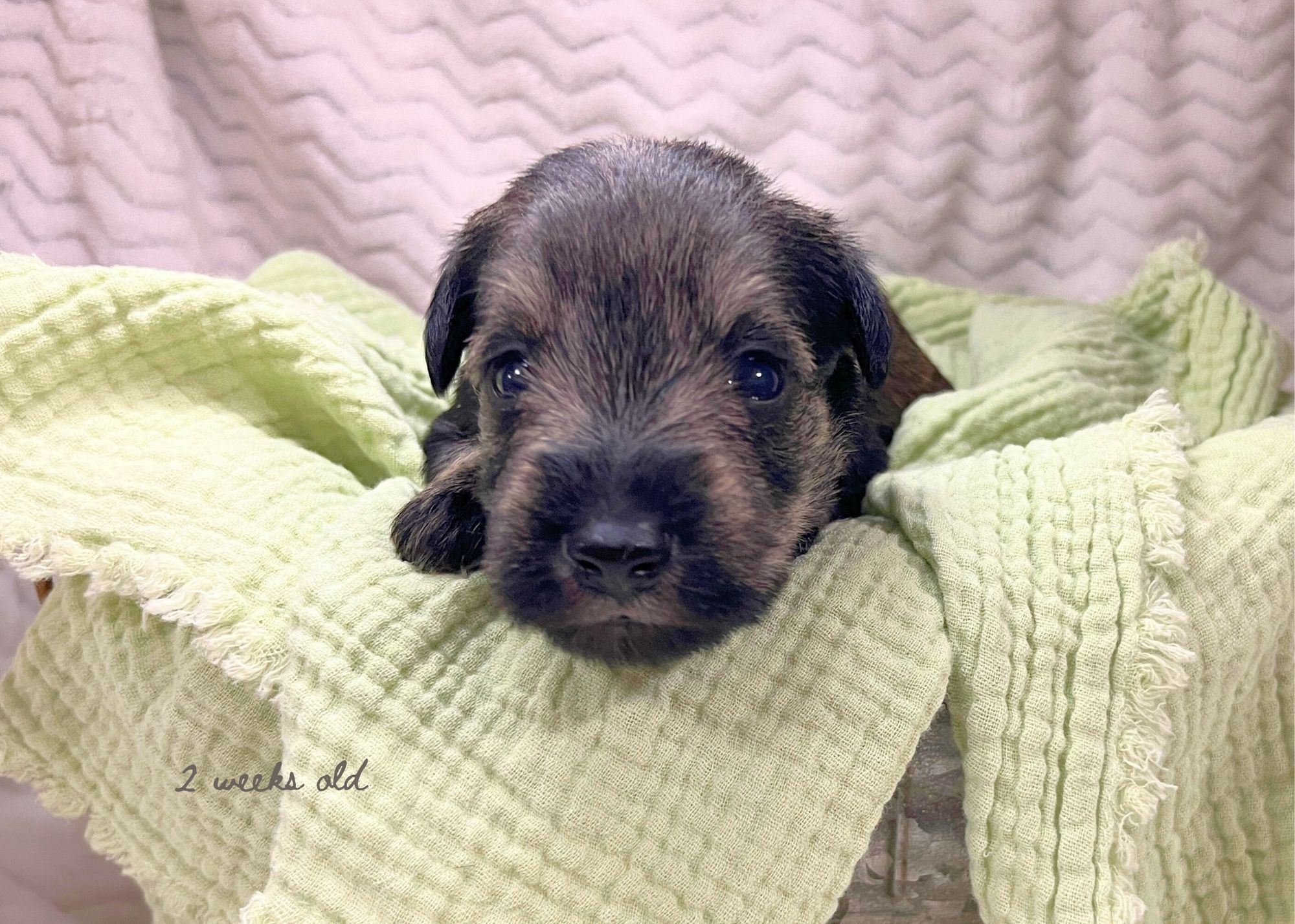 Miniature Schnauzers are a small friendly breed with an average height of 12 – 14″ and expected weight at maturity is 16 – 19 pounds. This loyal breed makes a very good family dog and they are also child friendly. Miniature Schnauzers are affectionate, loving and playful – making them great companions! The coat color of a Miniature Schnauzer is typically solid black or salt and pepper and they are a low shedding breed with distinctive bushy beard and eyebrows.