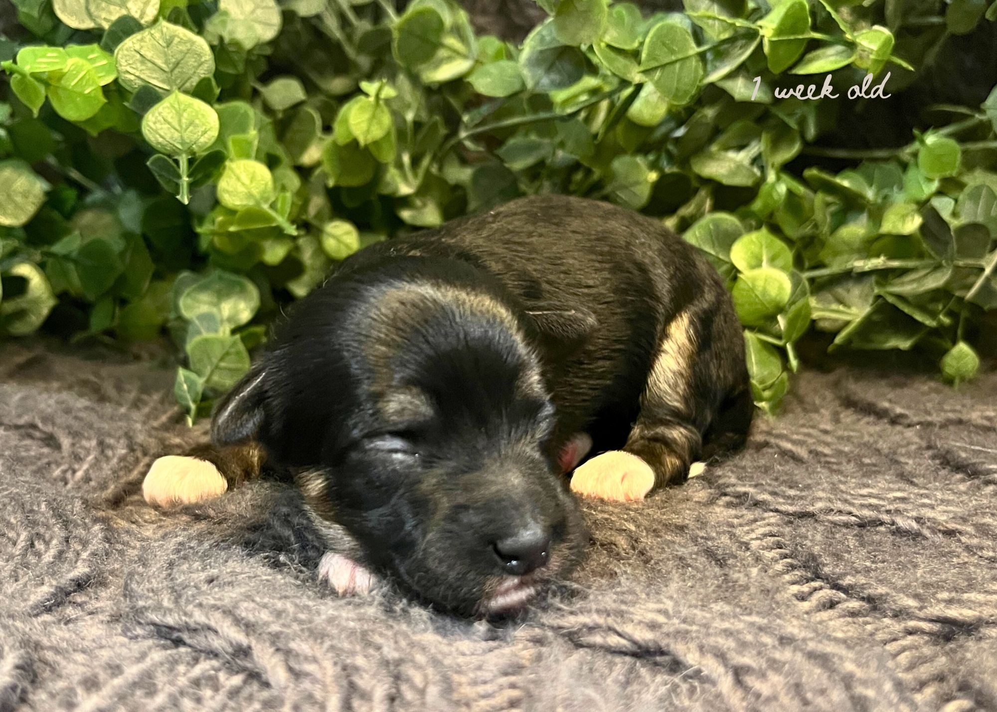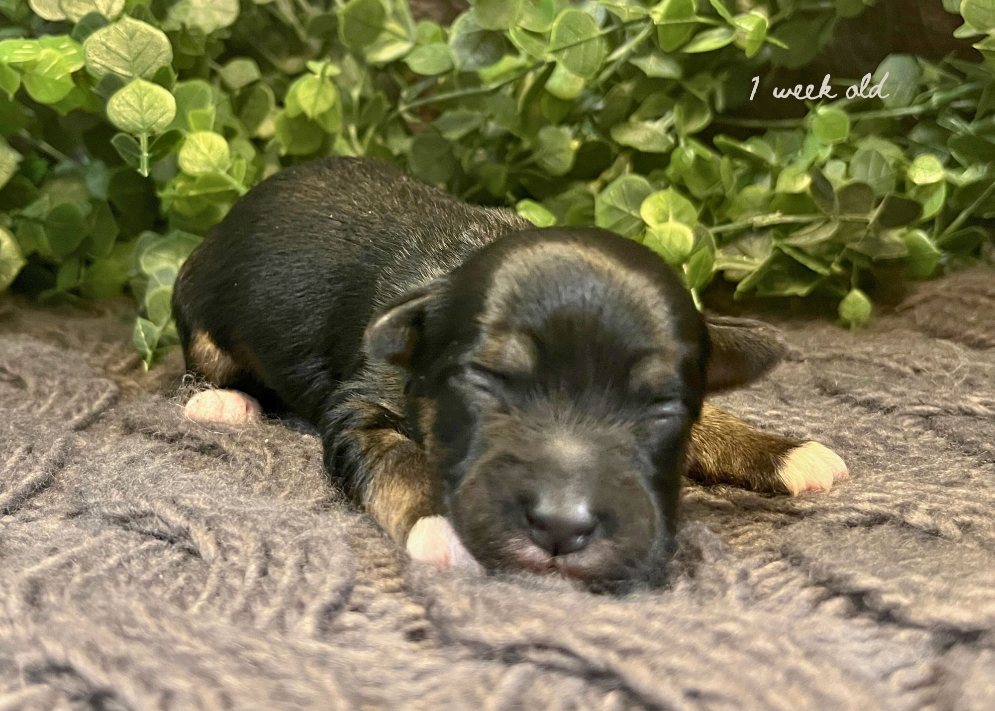 Mimosa was born on November 30 and will be ready to go home February 2, 2026! She is black and tan with white markings. We are expecting bubbly, affectionate and eager to please personalities!