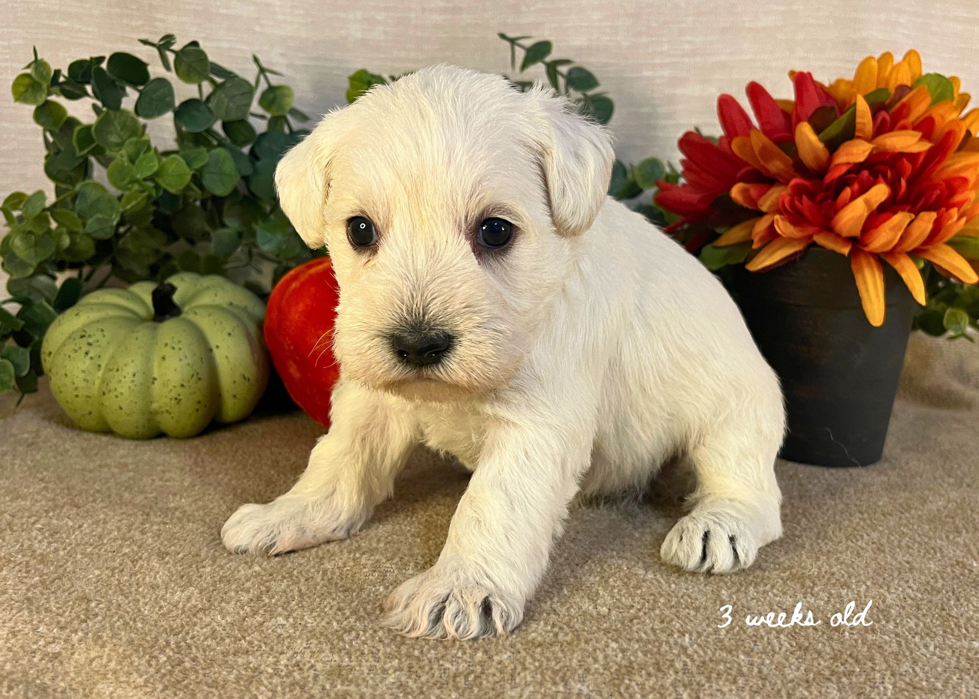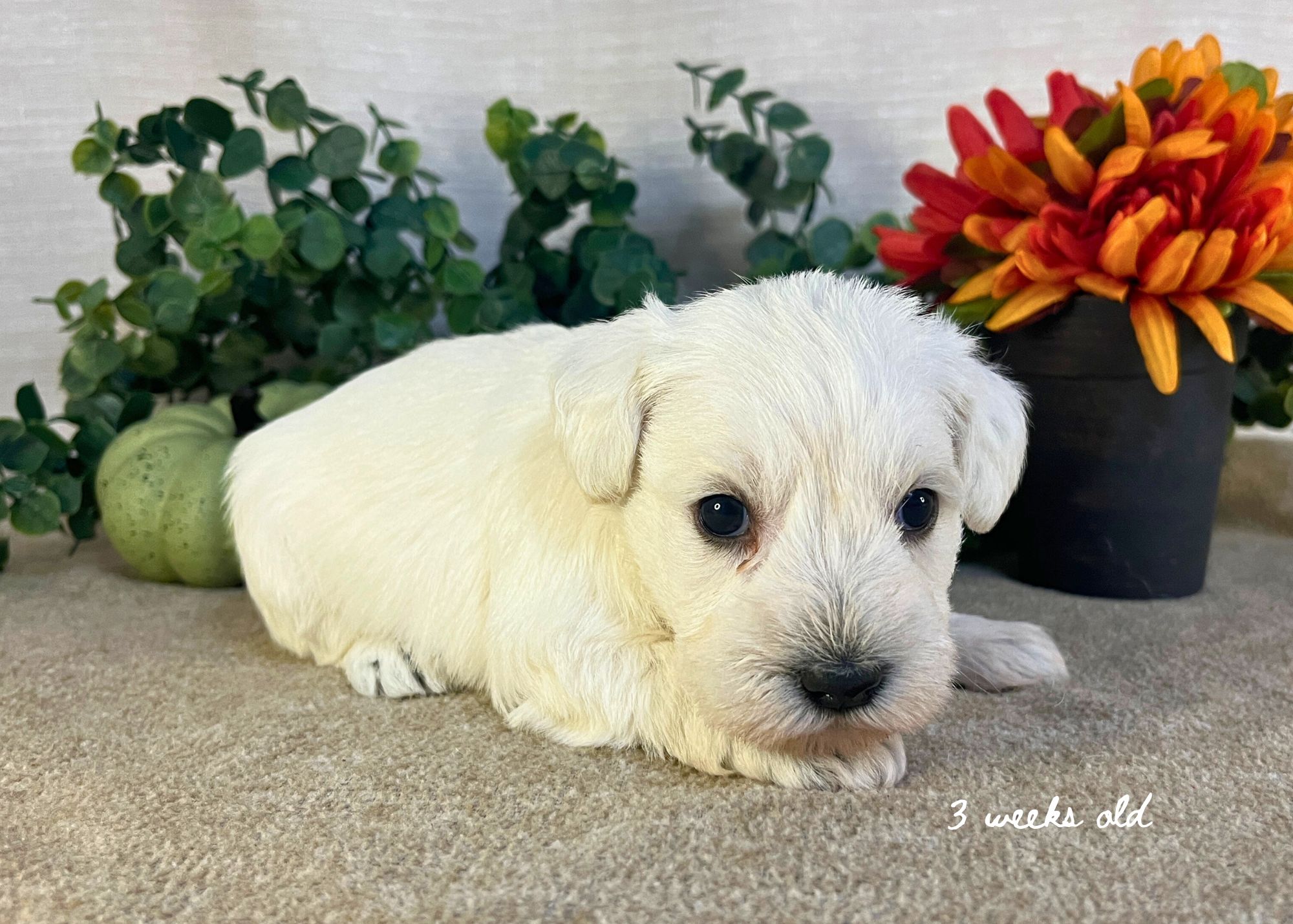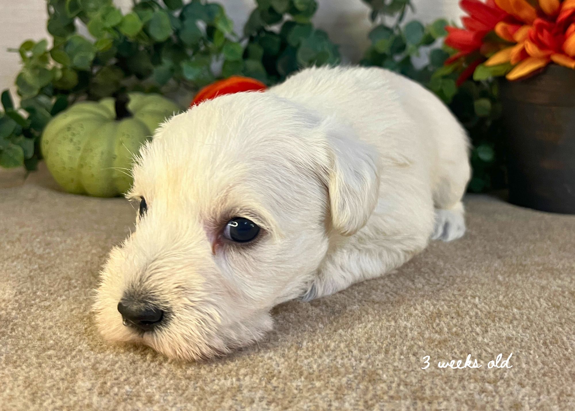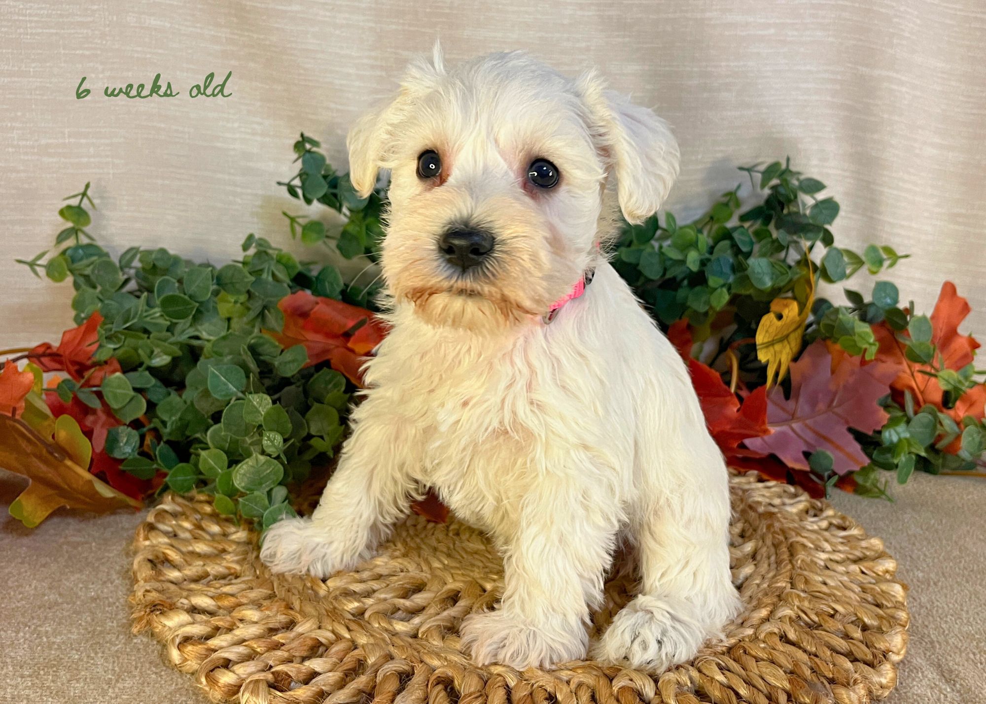 Stella was born on October 4 and she will be ready to go home around December 6, 2025! Her coloring is wheaten and she is cautious, independent and shy to ask for attention but loves one-on-one time!